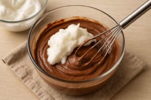 - Envolve as claras com carinho: Adiciona as claras batidas ao chocolate em três etapas, envolvendo com movimentos suaves de baixo para cima. Não batas — o segredo está no ar!